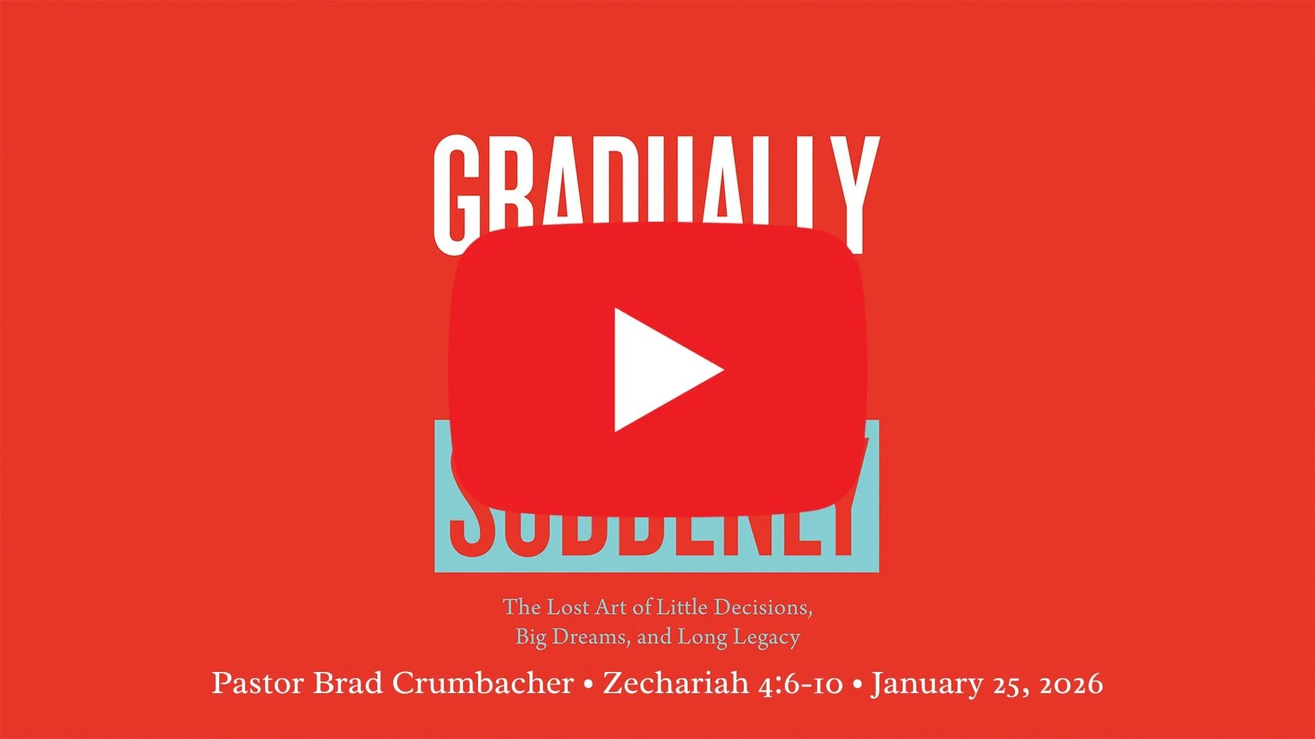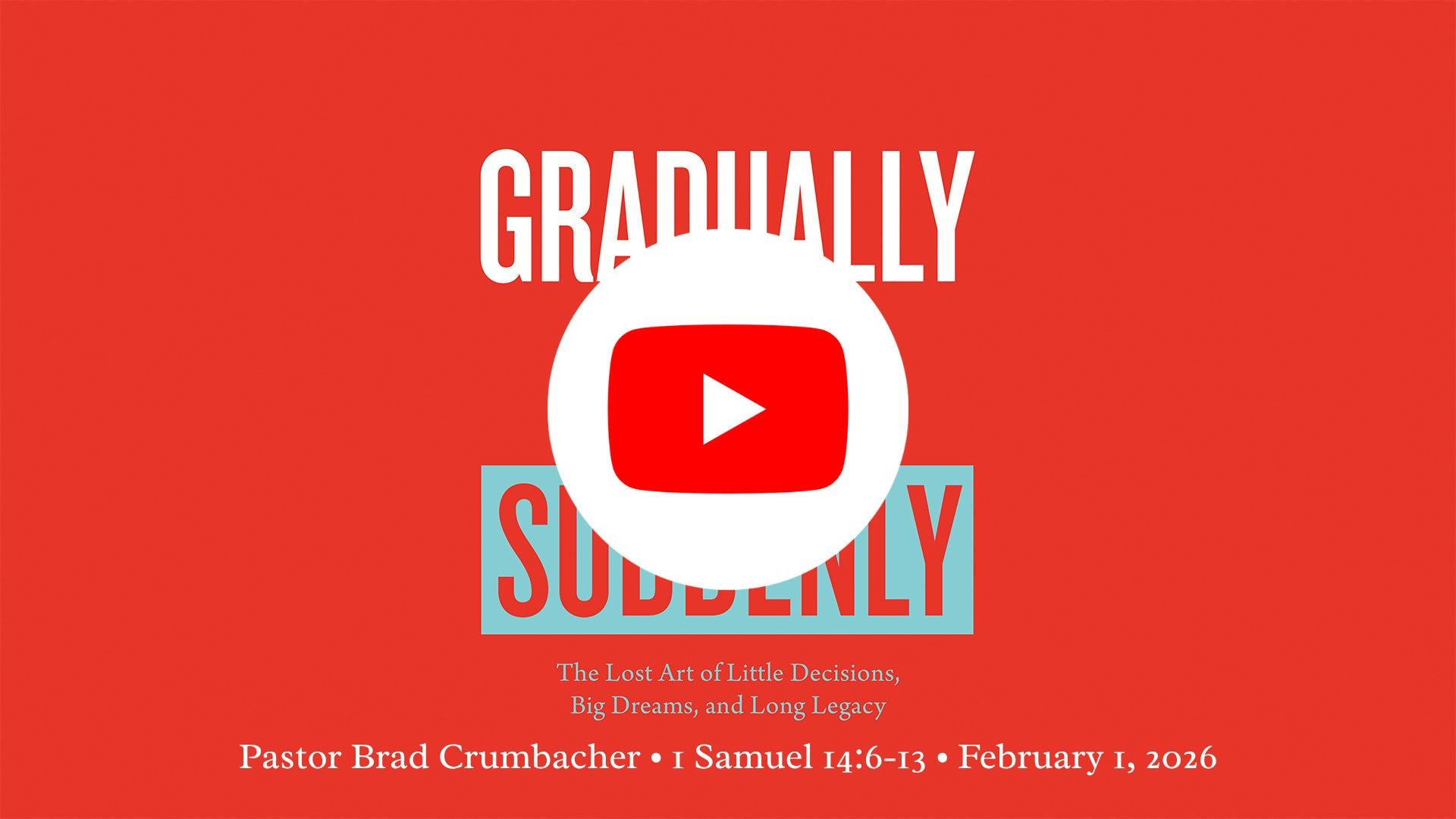 There are things that happen in life that can take us by surprise. They seem to happen all of a sudden. But when you look back, it was a slow accumulation of events or choices that led to that sudden outcome. In Ernest Hemingway's book "The Sun Also Rises", a character is challenged with a question, "How did you go bankrupt?" His answer? "Two ways: gradually then suddenly." That theory can describe many areas of our lives. Come join us as we study Scripture to identify some faithful steps we can take now to set the stage for future breakthroughs in our series Gradually Then Suddenly.
