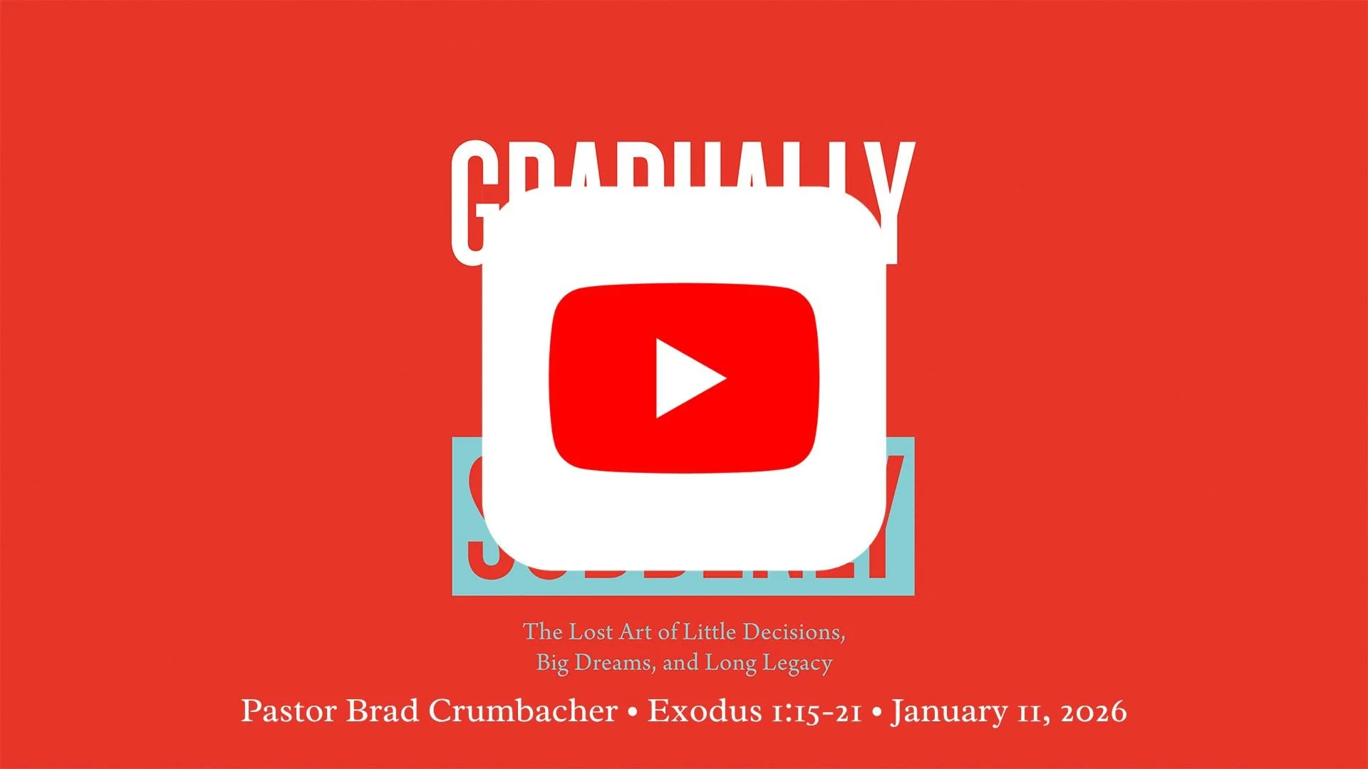There are things that happen in life that can take us by surprise. They seem to happen all of a sudden. But when you look back, it was a slow accumulation of events or choices that led to that sudden outcome. In Ernest Hemingway's book "The Sun Also Rises", a character is challenged with a question, "How did you go bankrupt?" His answer? "Two ways: gradually then suddenly." That theory can describe many areas of our lives. Come join us as we study Scripture to identify some faithful steps we can take now to set the stage for future breakthroughs in our series Gradually Then Suddenly.